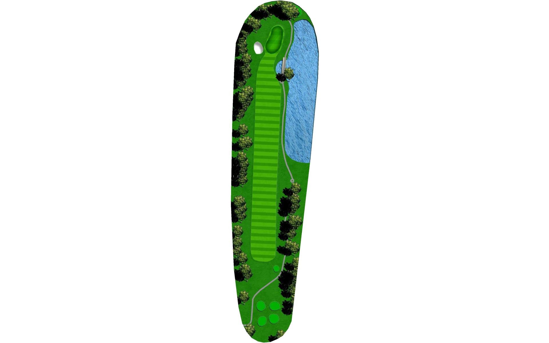 Enjoyable par five with plenty of room in the fairway - water threatens, but you have choices you may decide to go for it, or lay up to about 50 yards with a wide approach landing area.
